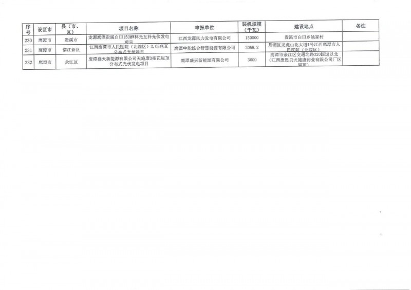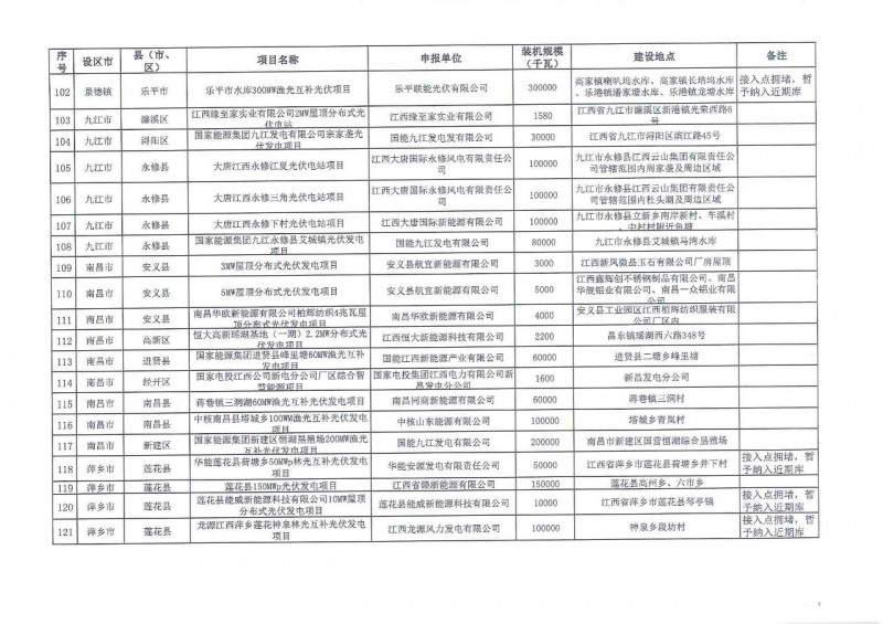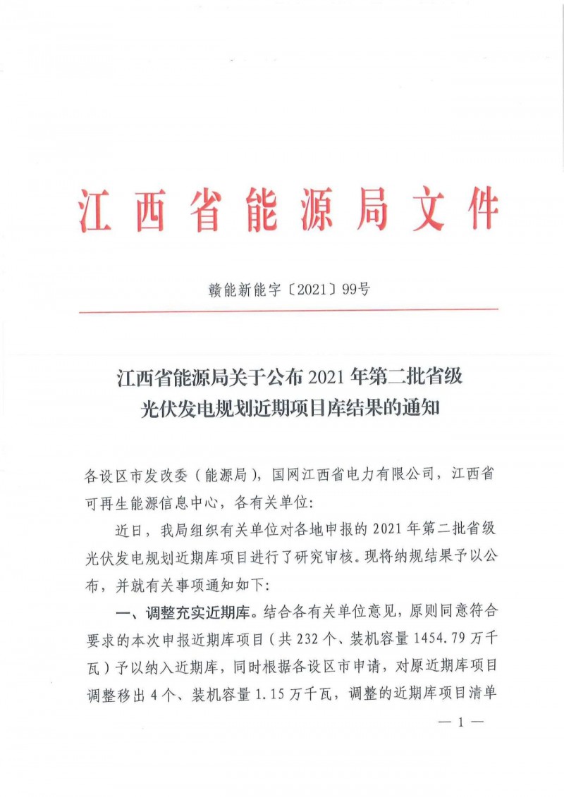 江西省2021年第二批光伏發(fā)電規(guī)劃近期庫調整納入項目共232個、1454.79萬千瓦項目,其中