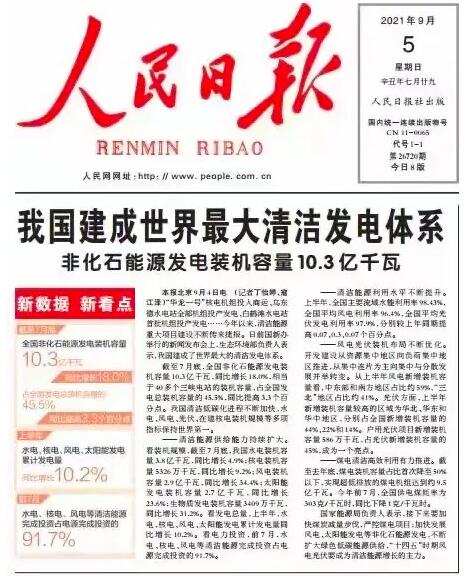 我國清潔低碳化進(jìn)程不斷加快,水電、風(fēng)電、光伏、在建核電裝機(jī)規(guī)模等多項指標(biāo)保持世界第一。