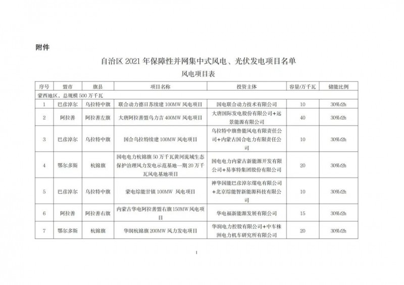 附件:自治區(qū)2021年保障性并網集中式風電、光伏發(fā)電項目名單