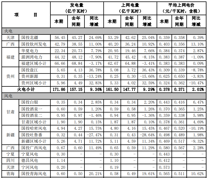 注: 1、國投電力于 2020年1月完成了對定邊光伏10 萬千瓦的收購。