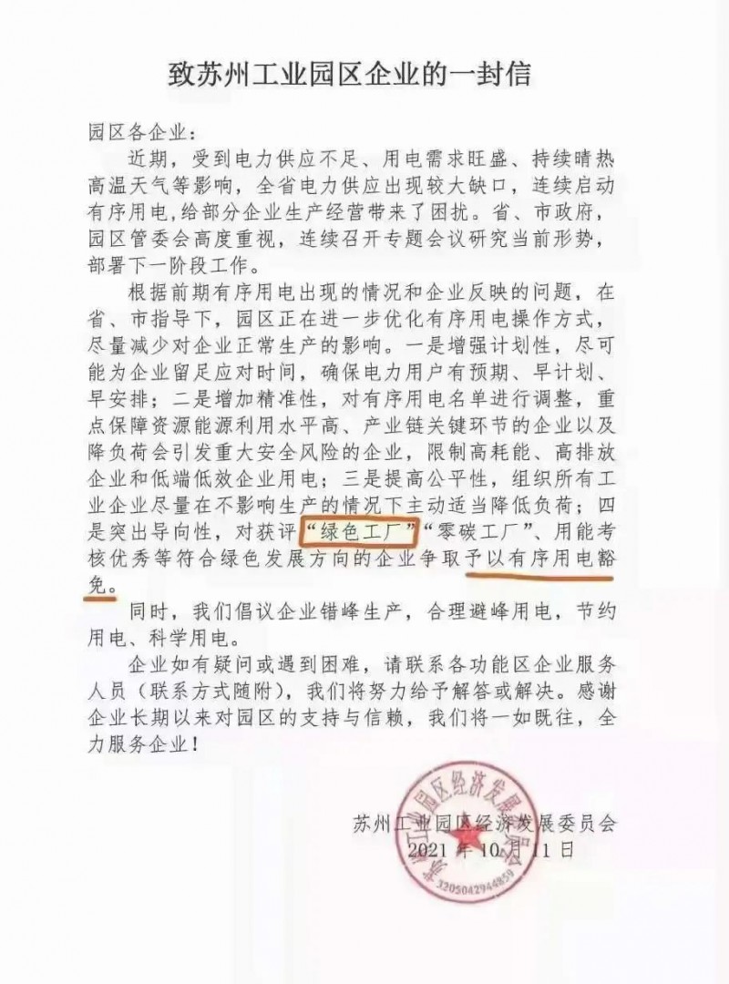 里面提到,近期受到電力供應(yīng)不足、用電需求旺盛、持續(xù)晴熱高溫天氣等影響,電力供應(yīng)出現(xiàn)較大缺口,連續(xù)啟動有序用電,給部分企業(yè)生產(chǎn)經(jīng)營帶來了困擾。在突出導(dǎo)向性中,提出對獲評“綠色工廠”“零碳工廠”、用能考核優(yōu)秀等符合綠色發(fā)展方向的企業(yè)爭取予以有序用電豁免。