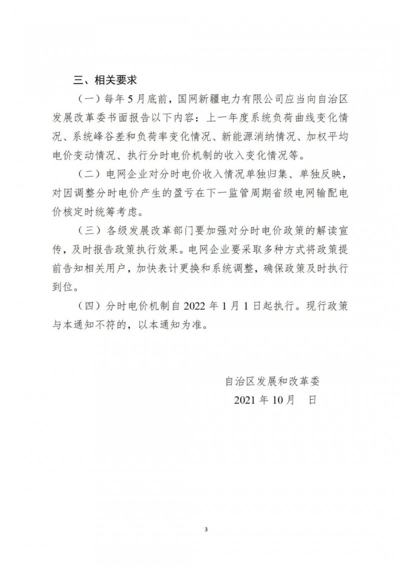10月15日,新疆發(fā)改委公布了關(guān)于公開征求《關(guān)于完善我區(qū)分時(shí)電價(jià)機(jī)制有關(guān)事項(xiàng)的通知》意見的公告。為適應(yīng)自治區(qū)電力系統(tǒng)峰谷特性變化、電力市場加快建設(shè)和新能源快速發(fā)展的新形勢新要求,新疆發(fā)改委起草了《關(guān)于完善我區(qū)分時(shí)電價(jià)機(jī)制有關(guān)事項(xiàng)的通知(征求意見稿)》。此次征求意見建議的時(shí)間為即日起的7個(gè)工作日內(nèi)。