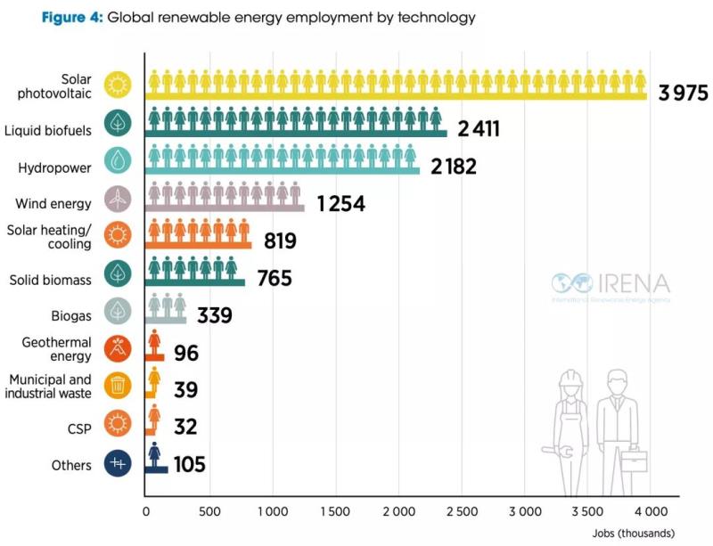 據(jù)可再生能源署發(fā)布的最新報告,2020年全世界約有1200萬個可再生能源工作崗位,其中太陽能約占三分之一。