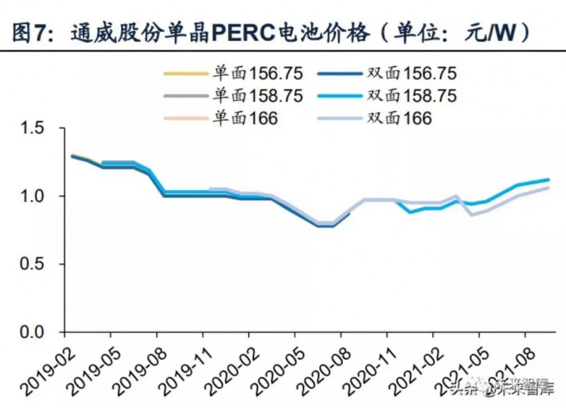 單雙面電池/組件幾乎同價(jià),雙面增益滲透率不斷提升。根據(jù)Wind,通威股份PERC單雙面電池片報(bào)價(jià)已趨于一致。根據(jù)Solarzoom,一線(xiàn)廠(chǎng)商單雙面組件成交價(jià)差也在0.02元/W以?xún)?nèi)。由于雙面組件背面發(fā)電增益帶來(lái)的性?xún)r(jià)比提升,滲透率正在快速提升,根據(jù)CPIA統(tǒng)計(jì),雙面組件市場(chǎng)份額已從2018年的2%提升至2020年的30%,預(yù)計(jì)2025年有望達(dá)到60%以上。
