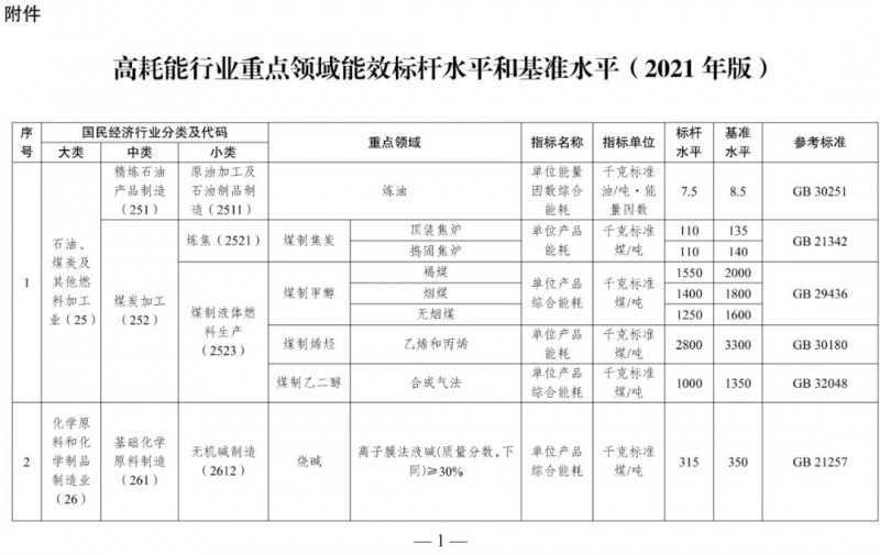 附件:高耗能行業(yè)重點領(lǐng)域能效標(biāo)桿水平和基準(zhǔn)水平(2021年版)