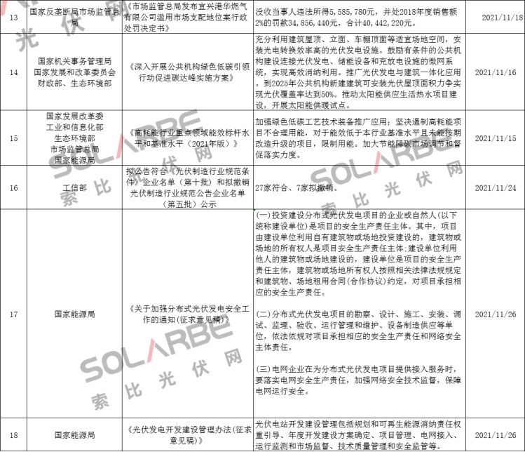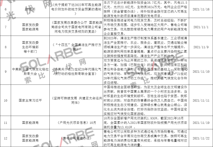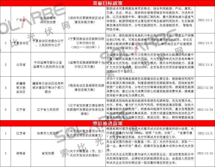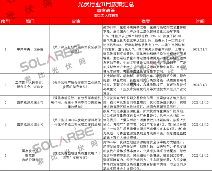 那么,11月份的光伏行業(yè)有哪些政策值得重點關注呢?下面來看索比光伏網(wǎng)的梳理。