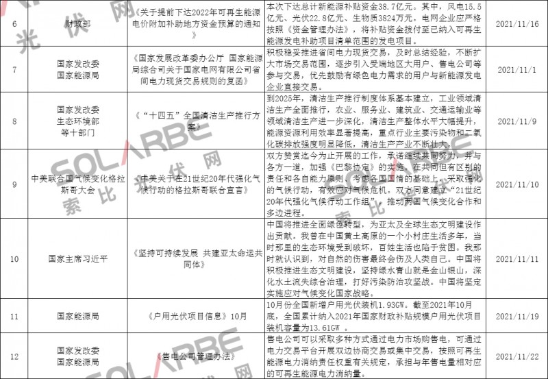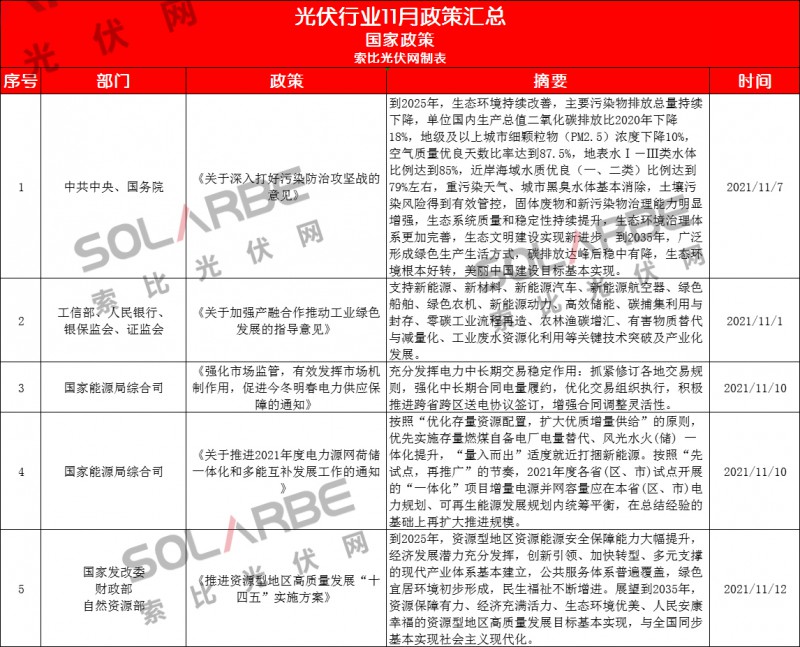 那么,11月份的光伏行業(yè)有哪些政策值得重點關(guān)注呢?下面來看索比光伏網(wǎng)的梳理。