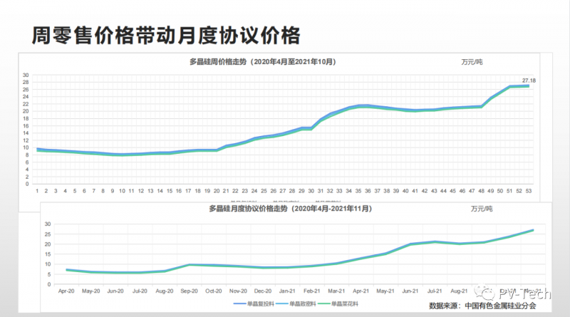 另一方面,其他超百吉瓦產(chǎn)能的中小企業(yè)和新進入的硅片搶購剩余不到10%的硅料,每月推高交易價格。