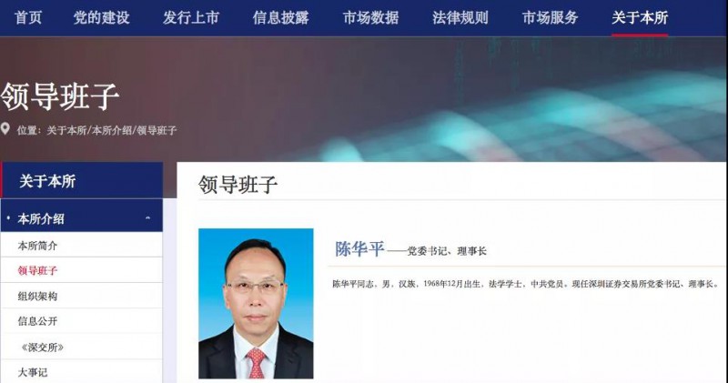同時(shí),深交所官網(wǎng)上的領(lǐng)導(dǎo)班子介紹信息已更新。官網(wǎng)顯示,陳華平,男,漢族,1968年12月出生,法學(xué)學(xué)士,中共黨員?,F(xiàn)任深圳證券交易所黨委書記、理事長。