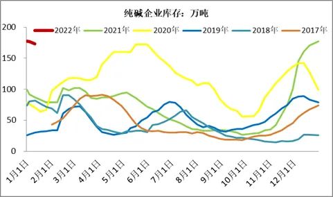 圖5 純堿生產(chǎn)企業(yè)庫(kù)存(萬(wàn)噸)