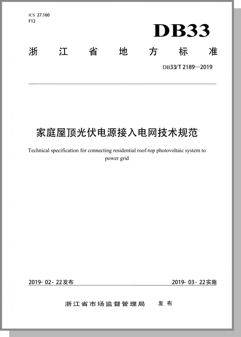 浙江省市場監(jiān)督管理局發(fā)布的«家庭屋頂光伏電源接入電網技術規(guī)范»:光伏電源并網電氣設備應符合GB 50054等國家相關技術標準,并滿足日常運行、維護和檢修的要求。根據GB/T3805和GB/T 18379相關規(guī)定,光伏電源應具備技術措施,在施工、維護和檢修等情況下能夠控制人體可能接觸的直流部分電壓在120V安全限值范圍內。