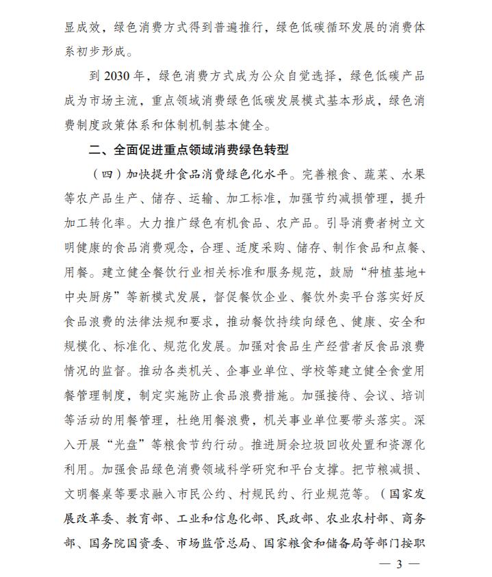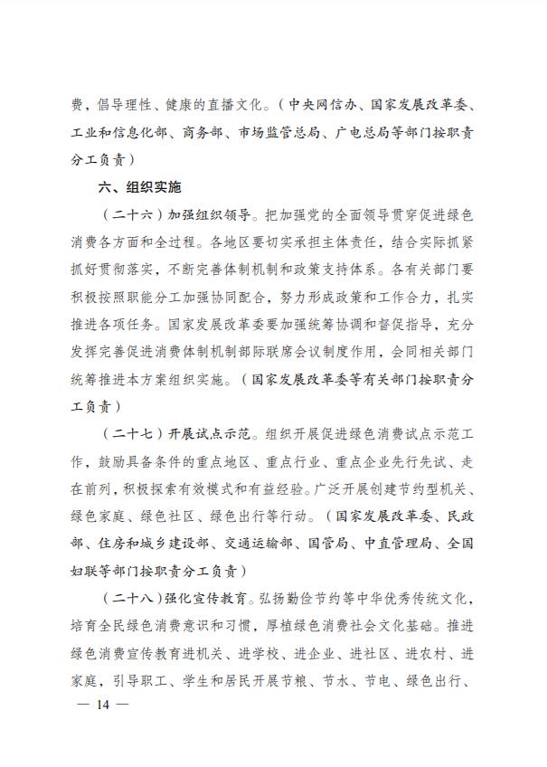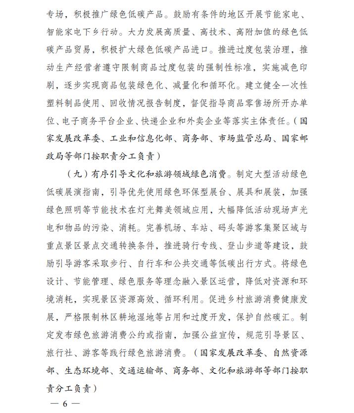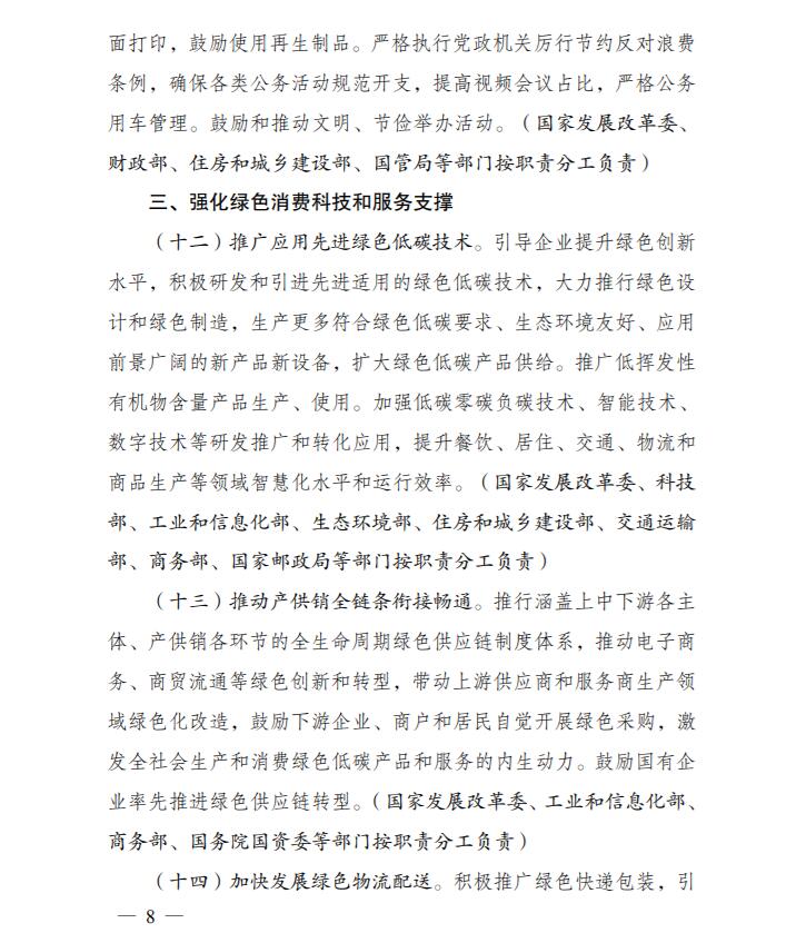 為深入貫徹落實《中共中央、國務院關(guān)于完整準確全面貫徹新發(fā)展理念做好碳達峰碳中和工作的意見》和《2030年前碳達峰行動方案》有關(guān)要求,根據(jù)碳達峰碳中和工作領(lǐng)導小組部署安排,國家發(fā)展改革委、工業(yè)和信息化部、住房和城鄉(xiāng)建設部、商務部、市場監(jiān)管總局、國管局、中直管理局會同有關(guān)部門研究制定了《促進綠色消費實施方案》?,F(xiàn)印發(fā)給你們,請結(jié)合實際,認真抓好貫徹落實。