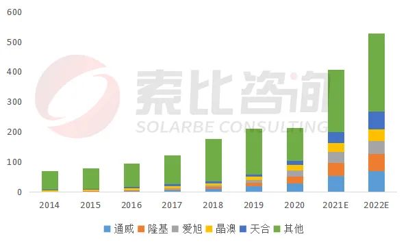 2021年底全球電池片產(chǎn)能達407GW,預(yù)計2022年底達540GW,產(chǎn)能過剩。