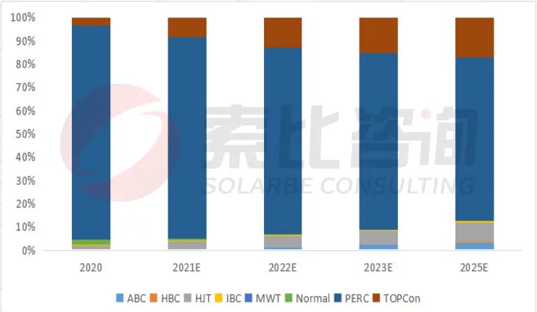 圖:電池片技術(shù)市占率變化趨勢