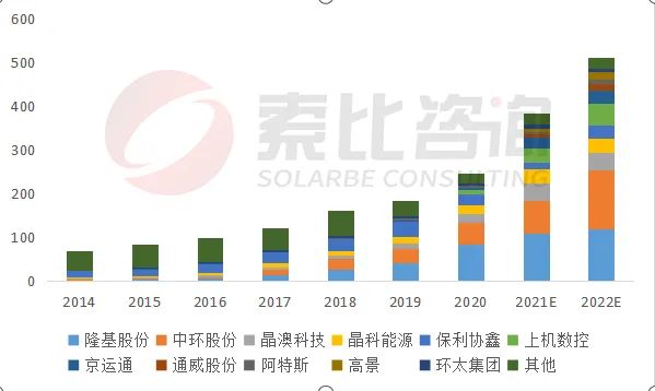 2021年底全球硅片產(chǎn)能366GW,索比咨詢預(yù)計2022年底硅片產(chǎn)能將達515GW,硅片產(chǎn)能供過于求。伴隨高景太陽能、雙良節(jié)能等新玩家重資入場,新老玩家競爭將加劇中小企業(yè)淘汰,雙寡頭局面或更改。