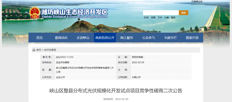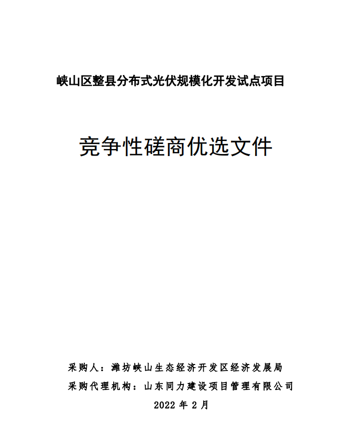 峽山區(qū)整縣分布式光伏規(guī)?;_發(fā)試點(diǎn)項(xiàng)目競(jìng)爭(zhēng)性磋商二次公告