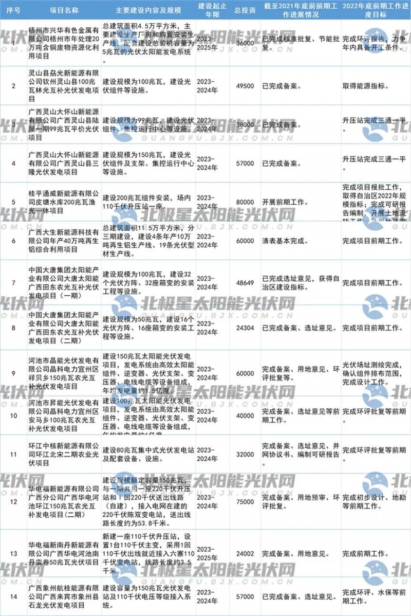 原標(biāo)題:廣西2022年第一批光伏重大項(xiàng)目名單