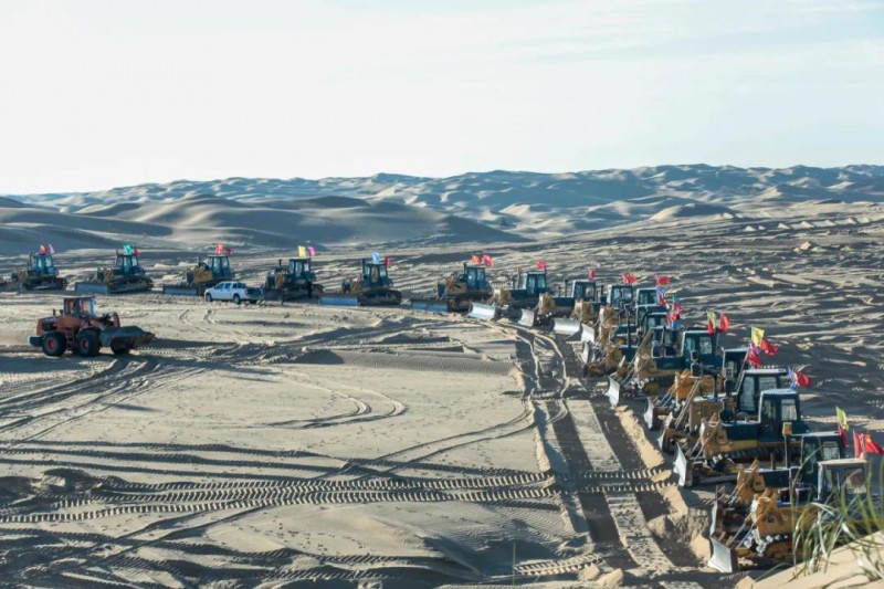 ▲2021年10月16日,內蒙古蒙西基地庫布其200萬千瓦光伏治沙項目開工現(xiàn)場。