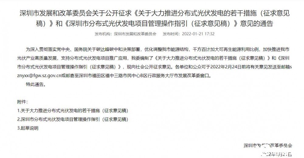 此次公開征求意見的《若干措施》《操作指引》由深圳市發(fā)改委負責編制,主要包括推進分布式光伏規(guī)模應用、完善光伏項目管理工作、培育光伏產業(yè)和骨干企業(yè)、創(chuàng)新光伏項目投融資服務、加強光伏并網管理和服務、實施新建光伏項目財政補貼、強化安全責任監(jiān)管等內容。
