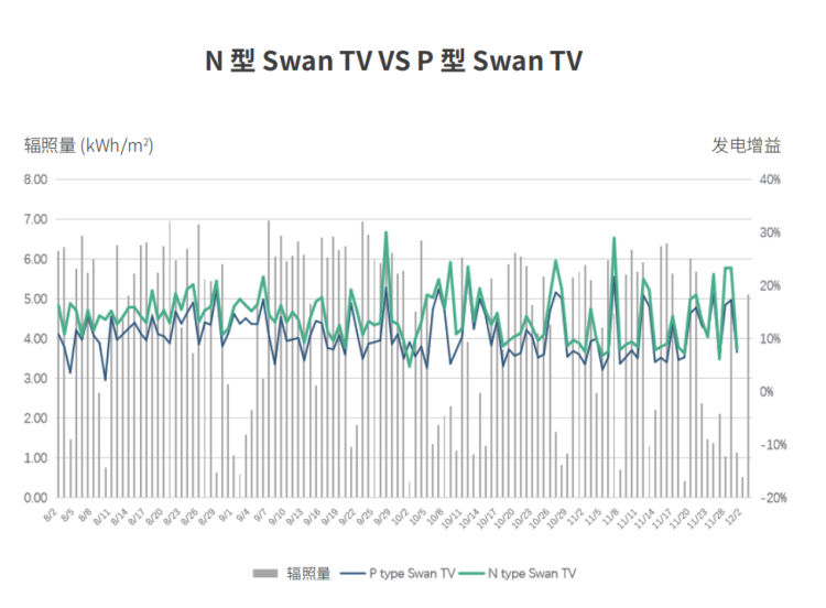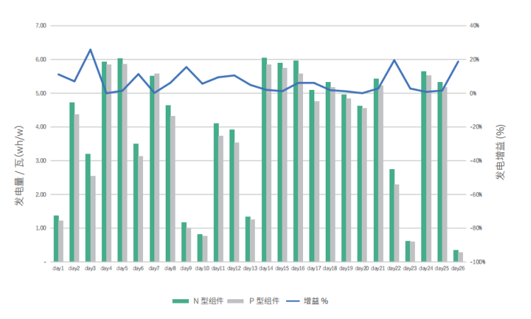 技術(shù)人員指出,N型TOPCon已經(jīng)在量產(chǎn)效率、成本控制和市場(chǎng)份額上取得明顯優(yōu)勢(shì),高效N型產(chǎn)品將加速新能源大基地項(xiàng)目高質(zhì)量落地。長(zhǎng)遠(yuǎn)來看,TOPCon電池正處于高速發(fā)展期,其效率的不斷提升會(huì)不斷拉大N、P型組件的功率差異,制造工藝的優(yōu)化、新型技術(shù)的應(yīng)用亦會(huì)不斷擴(kuò)大其在成本端的優(yōu)勢(shì)。“在山東、浙江、海南的實(shí)證數(shù)據(jù)表明,同尺寸N型雙面組件在不同環(huán)境、不同時(shí)段、不同天氣下都能帶來更高發(fā)電量,平均比P型雙面組件高2.95%-10.26%。得益于更低的溫度系數(shù),隨著太陽(yáng)輻照度的增加,N型組件的輸出功率呈線性增加。此外,在低輻照度下,得益于更好的弱光性表現(xiàn),N型組件能提供更高輸出功率以及更好的標(biāo)準(zhǔn)化輸出功率。”