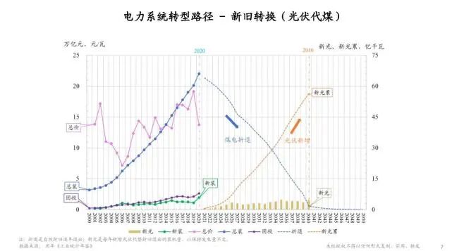 這就是一個(gè)轉(zhuǎn)型路徑的問題。在這里我們有一個(gè)策略,這些煤電既然已經(jīng)建了,那么就讓它在工作壽命期持續(xù)工作,隨著時(shí)間推延,每年會(huì)有折舊的、退役下來的,那在新增的發(fā)電能力上,就不再做傳統(tǒng)電源的投資,而是把新的投資都集中在光伏類型的新能源,這樣就會(huì)每年有一個(gè)逐漸等量替換的概念。同時(shí)如果有新的經(jīng)濟(jì)增長(zhǎng)需求,光伏的投資根據(jù)實(shí)際情況也可以略微增加,這樣的話就可以用大概20年完成一個(gè)自然的能源轉(zhuǎn)型,最終實(shí)現(xiàn)用光伏來替代煤炭,實(shí)現(xiàn)我們的“雙碳”目標(biāo)。