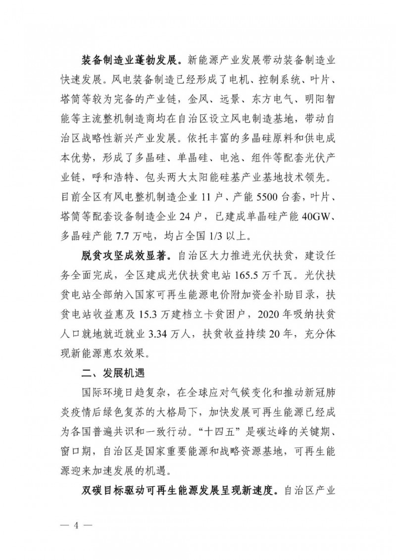 3月3日,內(nèi)蒙古自治區(qū)能源局網(wǎng)站公開發(fā)布了“內(nèi)蒙古自治區(qū)能源局關(guān)于印發(fā)《內(nèi)蒙古自治區(qū)“十四五”可再生能源發(fā)展規(guī)劃》的通知(內(nèi)能新能字〔2022〕103號(hào))”,根據(jù)規(guī)劃,“十四五”時(shí)期,我區(qū)可再生能源主要發(fā)展目標(biāo)如下: