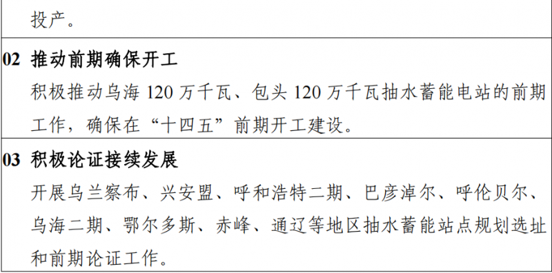 1)加快推進(jìn)赤峰芝瑞 120 萬千瓦抽水蓄能電站建設(shè),力爭(zhēng)早日建成投產(chǎn)。早日開工烏海 120 萬千瓦、包頭 120 萬千瓦抽水蓄能電站, 確保在“十四五”前期開工建設(shè)。2)力爭(zhēng)“十四五”期間新增并網(wǎng)太陽(yáng)能熱發(fā)電項(xiàng)目 50 萬千瓦。3)原則上新建新能源項(xiàng)目要配置 15%(2 小時(shí))以上的新型儲(chǔ)能設(shè)施4)“十四五” 期間,規(guī)劃新增新能源外送基地 2900 萬千瓦,力爭(zhēng)累計(jì)投產(chǎn) 3900 萬千瓦。力爭(zhēng)2025 年前推動(dòng)開工配套新能源基地 1000 萬千瓦。具體如下。