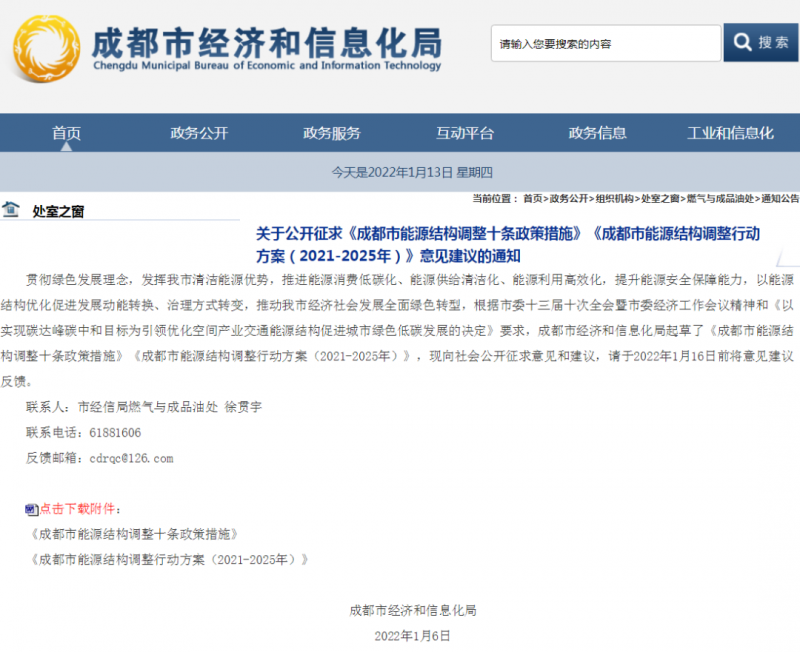 1月10日,成都市經(jīng)濟(jì)和信息化局發(fā)布關(guān)于公開征求《成都市能源結(jié)構(gòu)調(diào)整十條政策措施》《成都市能源結(jié)構(gòu)調(diào)整行動(dòng)方案(2021-2025年)》意見建議的通知。支持先進(jìn)儲(chǔ)能發(fā)展應(yīng)用。積極推進(jìn)電源、電網(wǎng)、用戶側(cè)配套建設(shè)儲(chǔ)能示范建設(shè),按儲(chǔ)能設(shè)施規(guī)模200元/千瓦給予補(bǔ)助。