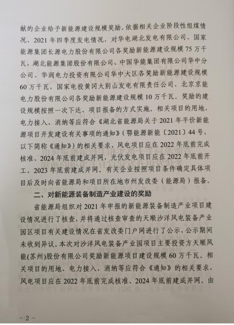 2)對(duì)新能源裝備制造產(chǎn)業(yè)建設(shè)的獎(jiǎng)勵(lì),60萬(wàn)千瓦;