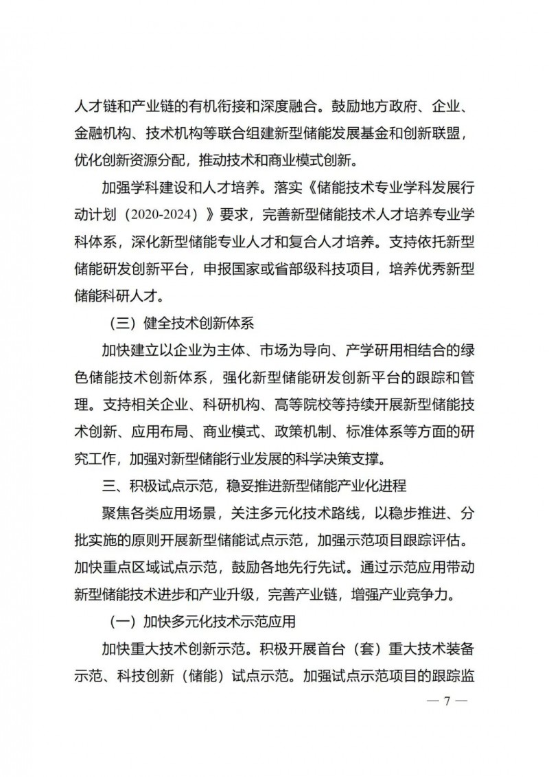 二是強(qiáng)化示范引領(lǐng)帶動產(chǎn)業(yè)發(fā)展?!秾嵤┓桨浮肪劢剐滦蛢δ芏嘣夹g(shù)路線、不同時間尺度技術(shù)和各類應(yīng)用場景,以穩(wěn)步推進(jìn)、分批實施的原則推動先進(jìn)儲能技術(shù)試點(diǎn)示范,加快首臺(套)重大技術(shù)裝備等重點(diǎn)技術(shù)的創(chuàng)新示范,以工程實踐加速技術(shù)迭代和更新,促進(jìn)成本下降;推動重點(diǎn)區(qū)域開展區(qū)域性儲能示范區(qū)建設(shè),結(jié)合應(yīng)用場景積極推動制定差異化政策,在一些創(chuàng)新成果多、體制基礎(chǔ)好、改革走在前的地區(qū)實現(xiàn)重點(diǎn)突破。結(jié)合新型儲能處于商業(yè)化初期階段實際,《實施方案》鼓勵各地在新型儲能發(fā)展工作中,堅持“示范先行”原則,避免“一刀切”上規(guī)模,積極開展技術(shù)創(chuàng)新、健全市場體系和政策機(jī)制方面的試點(diǎn)示范。通過示范應(yīng)用帶動技術(shù)進(jìn)步和產(chǎn)業(yè)升級,推動完善儲能上下游產(chǎn)業(yè)鏈條,支持儲能高新技術(shù)產(chǎn)業(yè)基地建設(shè)。