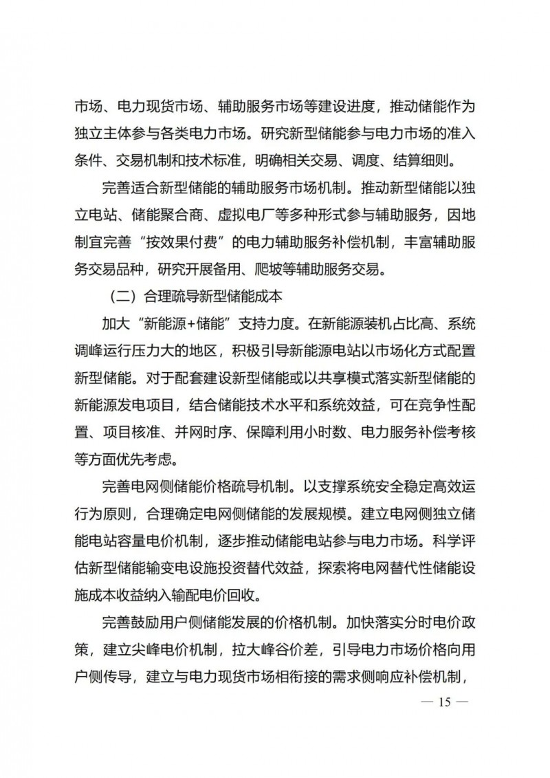 一)總體要求。一是指導(dǎo)思想中明確堅持以技術(shù)創(chuàng)新為內(nèi)生動力、以市場機(jī)制為根本依托、以政策環(huán)境為有力保障,穩(wěn)中求進(jìn)推動新型儲能高質(zhì)量、規(guī)?;l(fā)展的總體思路。二是基本原則中充分體現(xiàn)了以規(guī)劃為引領(lǐng)、以創(chuàng)新為驅(qū)動、以市場為主導(dǎo)、以機(jī)制為保障、以安全為底線的發(fā)展思路,明確統(tǒng)籌規(guī)劃、因地制宜,創(chuàng)新引領(lǐng)、示范先行,市場主導(dǎo)、有序發(fā)展,立足安全、規(guī)范管理四項發(fā)展原則。三是在發(fā)展目標(biāo)中,更注重通過支持技術(shù)和商業(yè)模式創(chuàng)新、健全標(biāo)準(zhǔn)體系、完善政策機(jī)制等措施,充分激發(fā)市場活力,推動構(gòu)建以需求為導(dǎo)向,以充分發(fā)揮新型儲能價值為目標(biāo)的高質(zhì)量規(guī)模化發(fā)展格局。