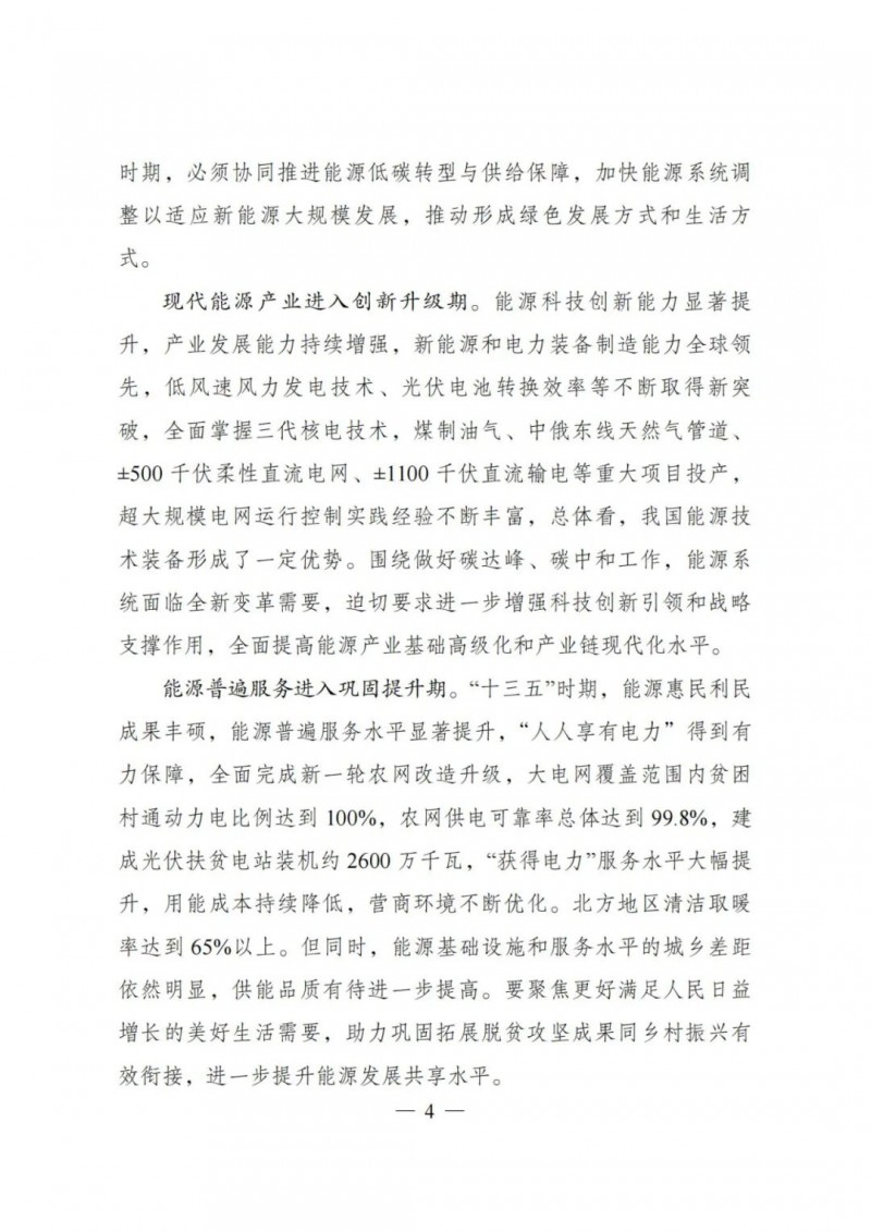 《“十四五”現(xiàn)代能源體系規(guī)劃》已經(jīng)國務(wù)院批復(fù)同意,現(xiàn)印發(fā)給你們,請認(rèn)真貫徹實(shí)施。