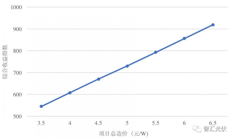 當初始投資為6元/W時,綜合收益指數(發(fā)電小時數×上網電價)達到860時,項目內部收益率即可達到基準收益率8%;