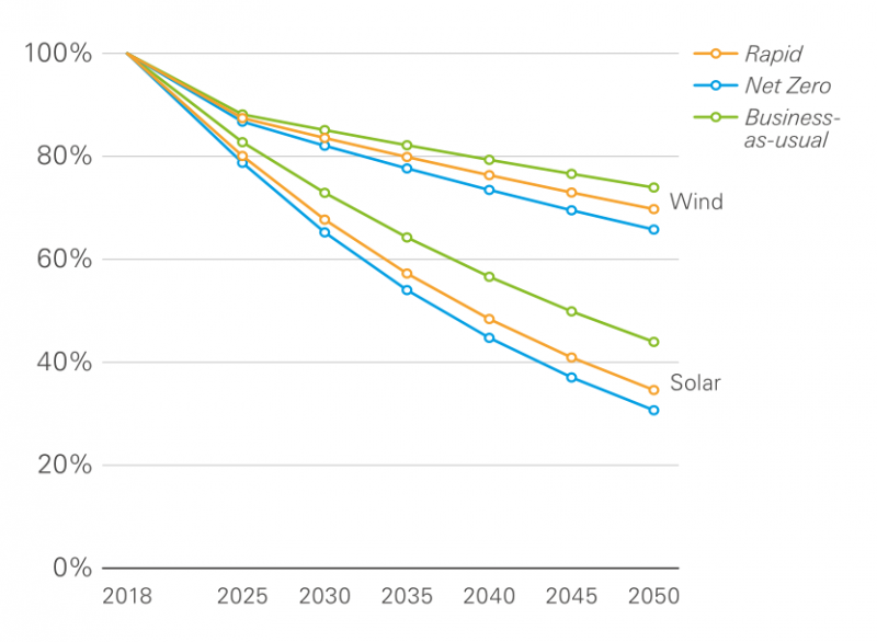 圖3:未來30年光伏成本下降曲線,資料來源:BP Energy