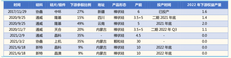 圖5:下游企業(yè)通過參股方式綁定頭部多晶硅企業(yè)(萬噸),資料來源:各公司公告,國金證券