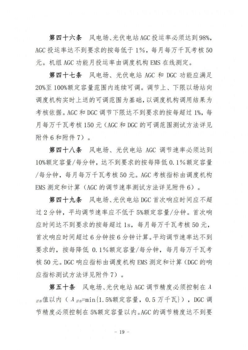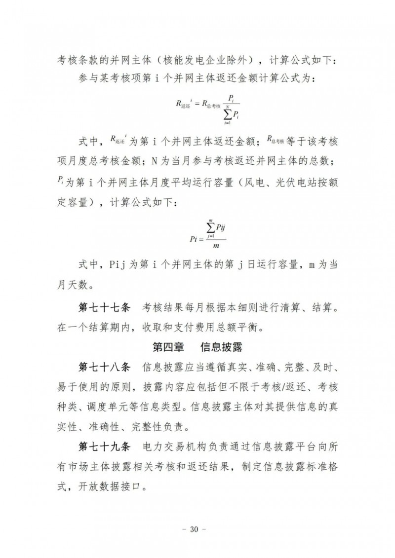 風(fēng)電場、光伏電站執(zhí)行并網(wǎng)主體運行管理考核及風(fēng)電場、光伏電站運行考核,其考核費用返還按當(dāng)月所有風(fēng)電場、光伏電站額定容量(含配套儲能)比例分別計算分配。