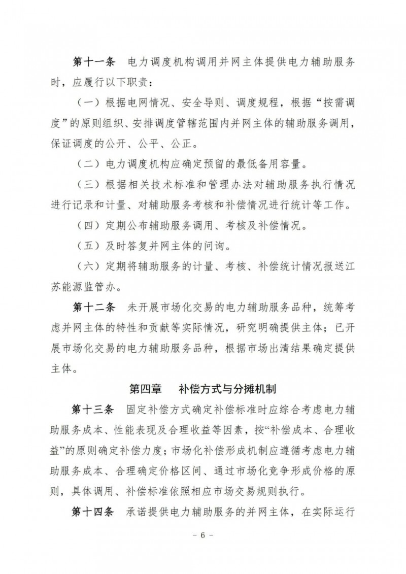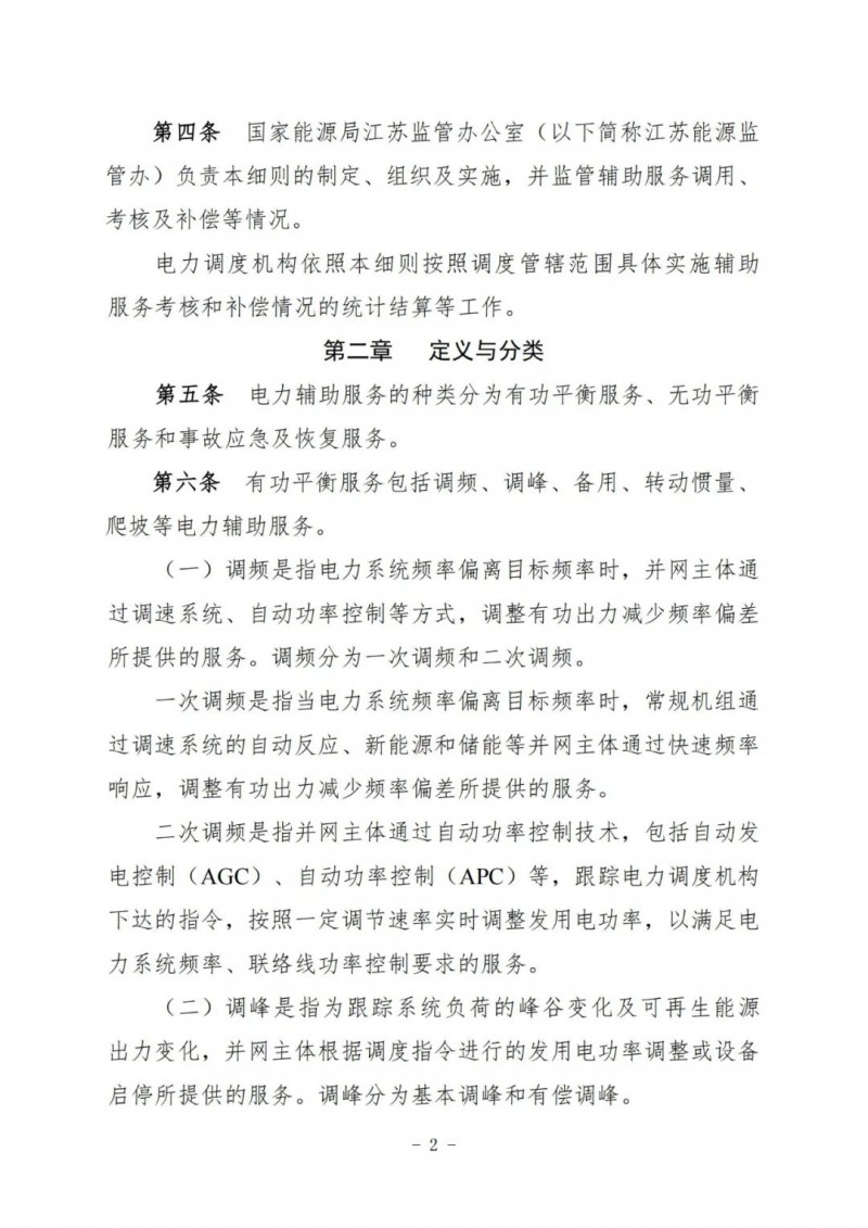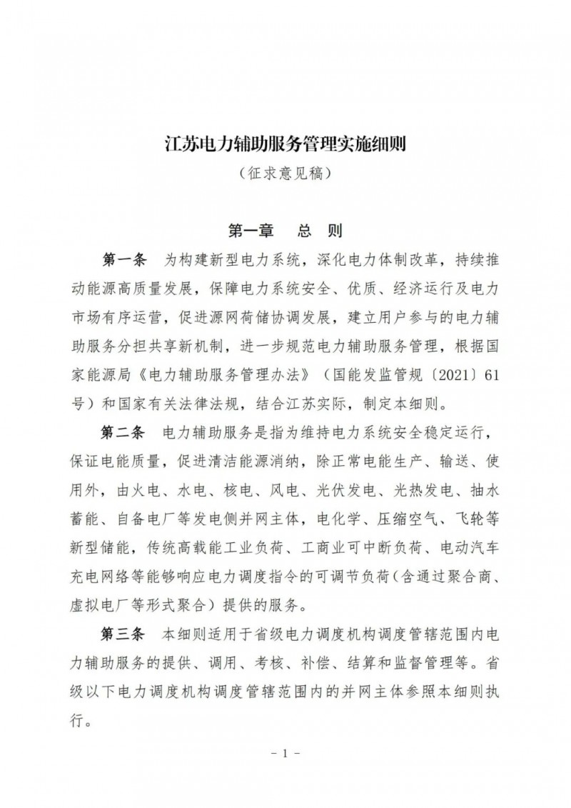 江蘇電力輔助服務(wù)管理實施細(xì)則(征求意見稿)