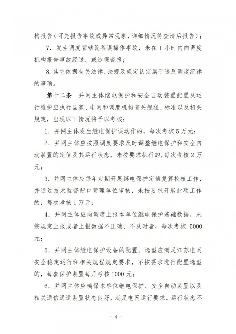 4月6日,國家能源局江蘇監(jiān)管辦公室就《江蘇電力并網(wǎng)運行管理實施細(xì)則(征求意見稿)》與《江蘇電力輔助服務(wù)管理實施細(xì)則(征求意見稿)》公開征求意見。風(fēng)電場、光伏電站應(yīng)完善電能質(zhì)量、調(diào)試管理,加強運行管理規(guī)定執(zhí)行,出現(xiàn)下列事項之一者,每次考核5萬元: