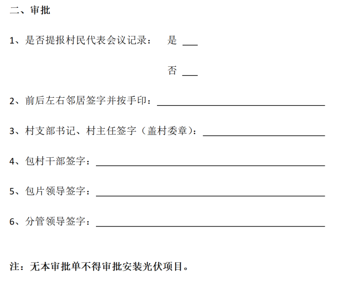 按照鎮(zhèn)政府要求,一戶人家想要安裝屋頂光伏系統(tǒng),不僅要睦鄰友好,還要取得當(dāng)?shù)馗骷?jí)領(lǐng)導(dǎo)干部認(rèn)可支持。顯然,對(duì)多數(shù)人而言,這需要消耗較多時(shí)間精力才能完成,一些群眾可能出于“怕麻煩”心理,放棄安裝光伏系統(tǒng)。