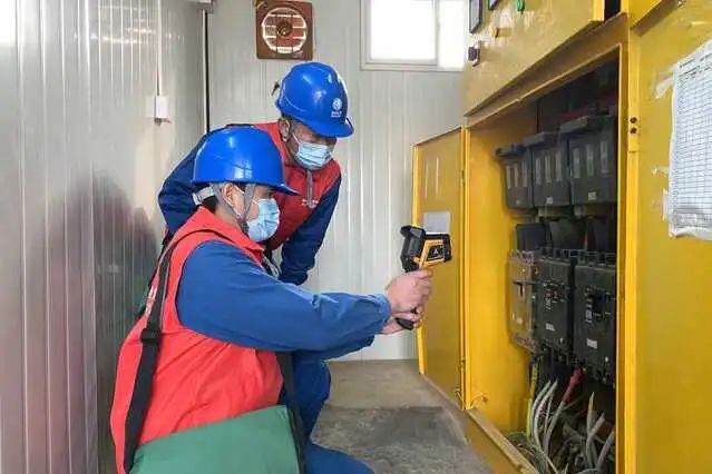 國(guó)網(wǎng)石家莊市鹿泉區(qū)供電公司黨員服務(wù)隊(duì)到千億級(jí)產(chǎn)業(yè)園區(qū)??低曧?xiàng)目建設(shè)工地幫助檢查用電設(shè)備。張靜攝