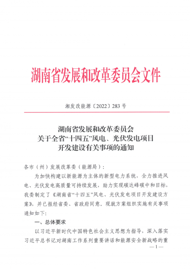 4月14日,湖南發(fā)改委印發(fā)《關(guān)于全省“十四五”風電、光伏發(fā)電項目開發(fā)建設(shè)有關(guān)事項的通知》,力爭做到在“十四五”期間具備開發(fā)建設(shè)條件的風電、集中式光伏發(fā)電項目應(yīng)開盡開。