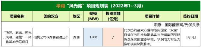 截至2022年3月31日,華潤共簽約(規(guī)劃)1個風(fēng)光儲項目,項目規(guī)模1.2GW。