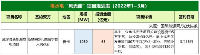 截至2022年3月31日,粵水電共簽約(規(guī)劃)1個風(fēng)光儲項目,項目規(guī)模為1.05GW,投資金額63億元。
