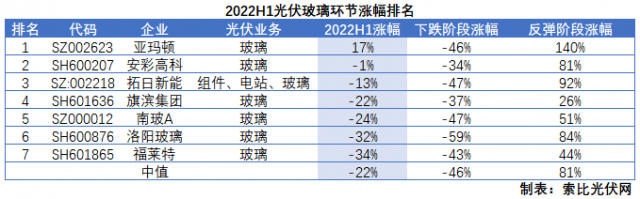 在負收益的環(huán)節(jié)中,缺少業(yè)績支撐且技術層面相對穩(wěn)定的支架、光伏玻璃、膠膜等環(huán)節(jié)整體跌幅居前,這三個環(huán)節(jié)中僅有亞瑪頓一家光伏玻璃個股實現(xiàn)正收益,其它14只標的全部為負收益。