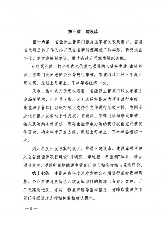 風(fēng)電、集中式光伏發(fā)電項目,省能源主管部門印發(fā)年度方案編制要求,由各縣(市、區(qū))選擇前期庫內(nèi)項目進(jìn)行申報。