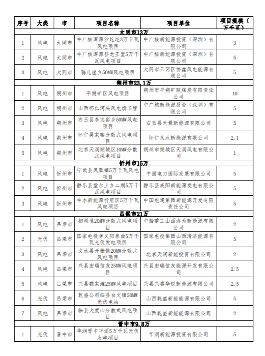 為推動(dòng)全省新能源項(xiàng)目健康可持續(xù)發(fā)展,省能源局組織各市對(duì)2020年及之前長期占用資源、遲遲未能建成的風(fēng)電光伏發(fā)電項(xiàng)目進(jìn)行了梳理。相關(guān)地市上報(bào)了本地區(qū)擬廢止項(xiàng)目清單,經(jīng)我局匯總,擬將云崗區(qū)協(xié)鑫雅兒崖鄉(xiāng)等54個(gè),總計(jì)規(guī)模138.8萬千瓦風(fēng)電光伏發(fā)電項(xiàng)目予以廢止,現(xiàn)予公示。相關(guān)企業(yè)如有異議,請向市能源局提出書面意見,并在公示期(5個(gè)工作日)內(nèi),由市能源局上報(bào)省能源局。