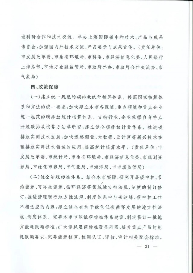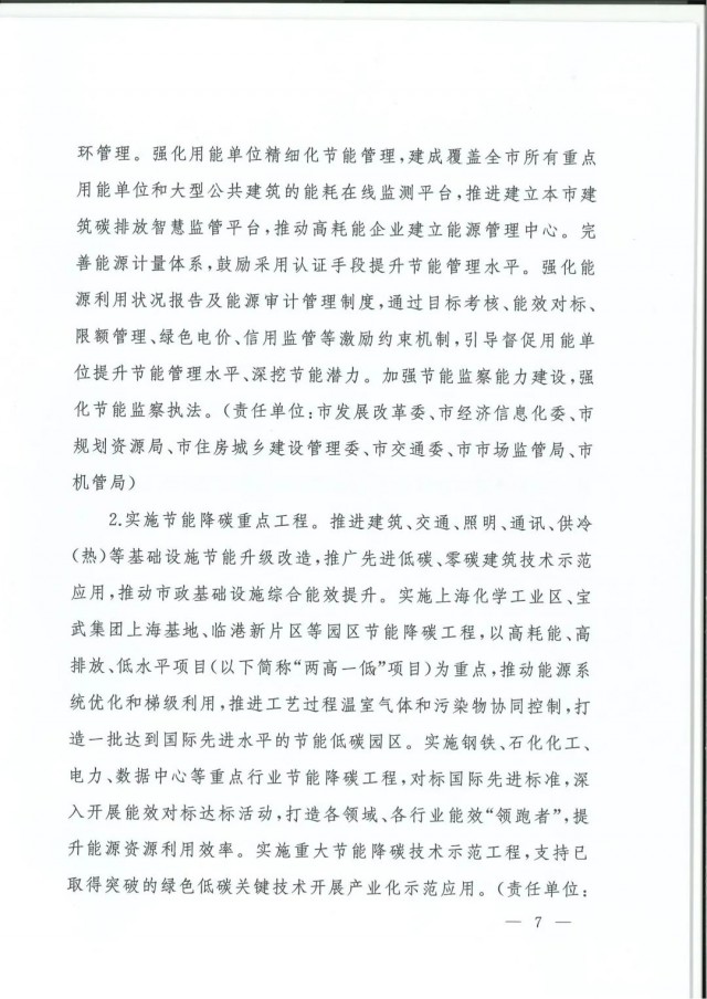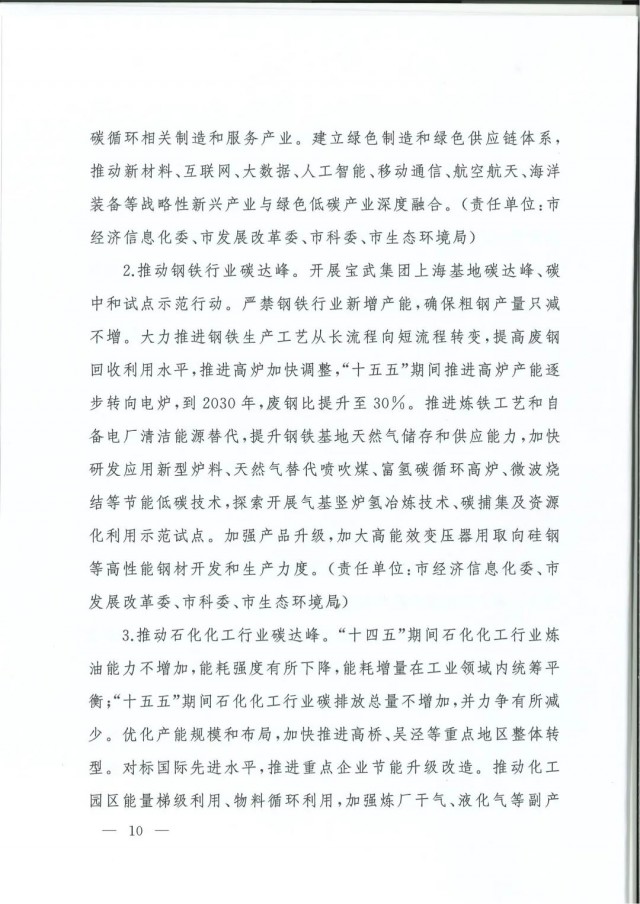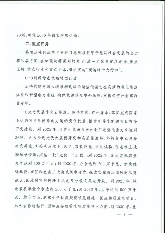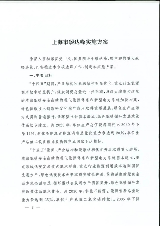 近日,上海市人民政府辦公廳印發(fā)了《上海市碳達(dá)峰實施方案》?!斗桨浮访鞔_主要目標(biāo):到2025年,單位生產(chǎn)總值二氧化碳排放確保完成國家下達(dá)指標(biāo)。到2030年單位生產(chǎn)總值二氧化碳排放比2005年下降70%,確保2030年前實現(xiàn)碳達(dá)峰。并計劃組織實施“碳達(dá)峰十大行動”,包括能源綠色低碳轉(zhuǎn)型行動、節(jié)能降碳增效行動、工業(yè)/城鄉(xiāng)建設(shè)/交通領(lǐng)域綠色低碳行動、循環(huán)經(jīng)濟(jì)助力降碳行動、綠色低碳科技創(chuàng)新行動、碳匯能力鞏固提升行動、綠色低碳全民行動、綠色低碳區(qū)域行動。