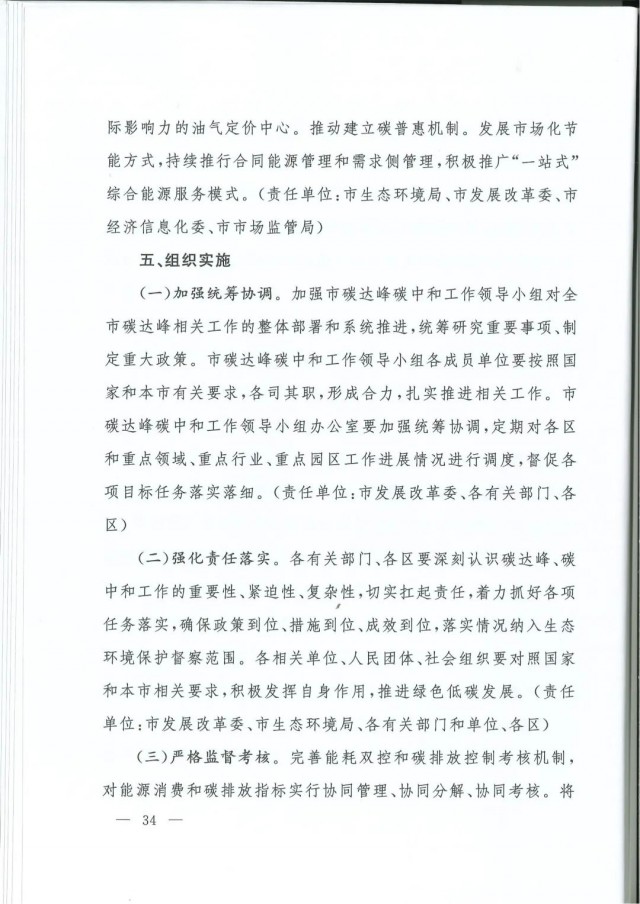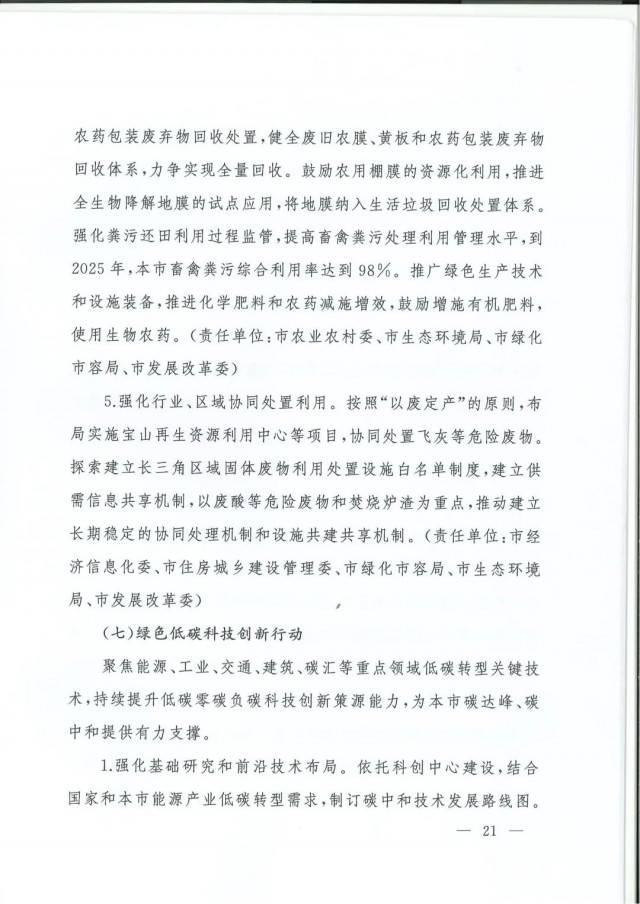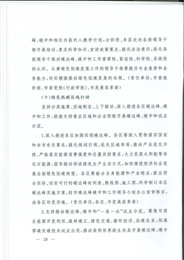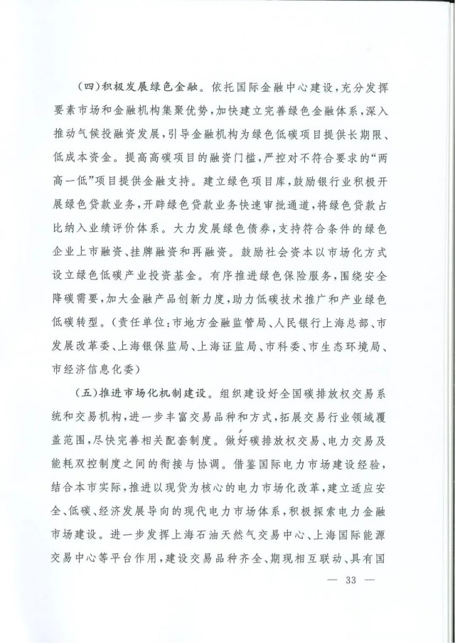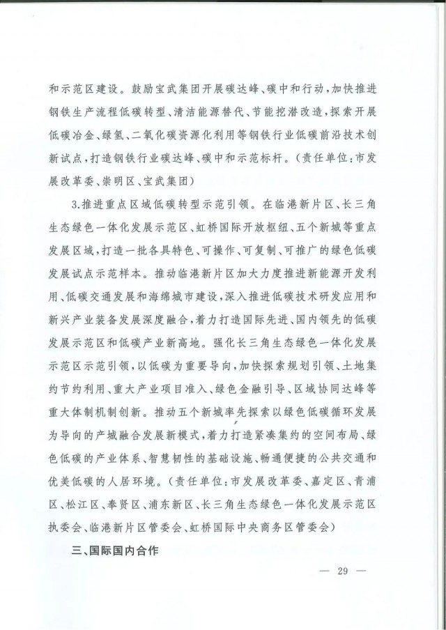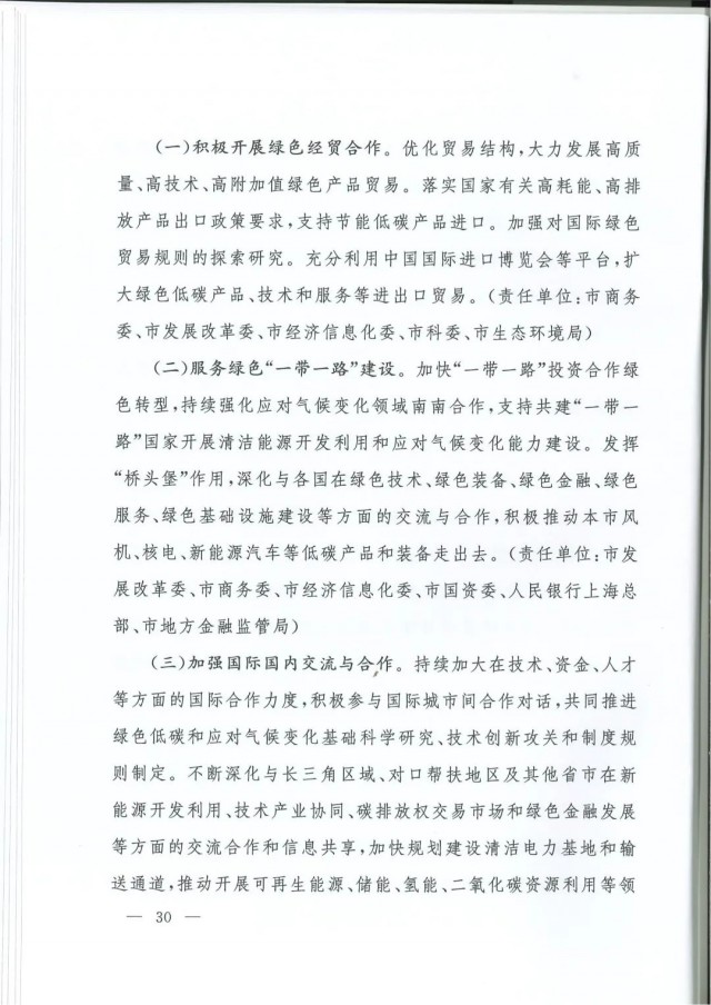 近日,上海市人民政府辦公廳印發(fā)了《上海市碳達(dá)峰實施方案》?!斗桨浮访鞔_主要目標(biāo):到2025年,單位生產(chǎn)總值二氧化碳排放確保完成國家下達(dá)指標(biāo)。到2030年單位生產(chǎn)總值二氧化碳排放比2005年下降70%,確保2030年前實現(xiàn)碳達(dá)峰。并計劃組織實施“碳達(dá)峰十大行動”,包括能源綠色低碳轉(zhuǎn)型行動、節(jié)能降碳增效行動、工業(yè)/城鄉(xiāng)建設(shè)/交通領(lǐng)域綠色低碳行動、循環(huán)經(jīng)濟(jì)助力降碳行動、綠色低碳科技創(chuàng)新行動、碳匯能力鞏固提升行動、綠色低碳全民行動、綠色低碳區(qū)域行動。