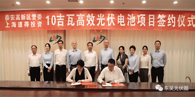 7月25日,泰安高新區(qū)舉行重點(diǎn)項(xiàng)目簽約儀式,在泰安市委書(shū)記楊洪濤,市長(zhǎng)張濤,高新區(qū)黨工委書(shū)記、管委會(huì)主任劉斌等市、區(qū)領(lǐng)導(dǎo)的見(jiàn)證下,泰安道得雙碳產(chǎn)業(yè)基金暨10吉瓦光伏電池制造項(xiàng)目順利簽約。據(jù)了解,這是山東省內(nèi)首個(gè)10吉瓦高效光伏電池項(xiàng)目,定將為山東省落實(shí)雙碳目標(biāo)貢獻(xiàn)力量。