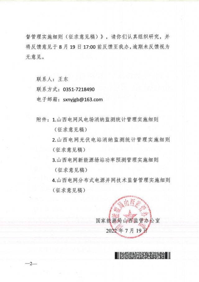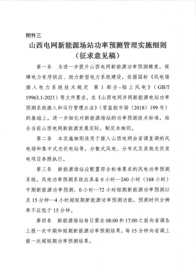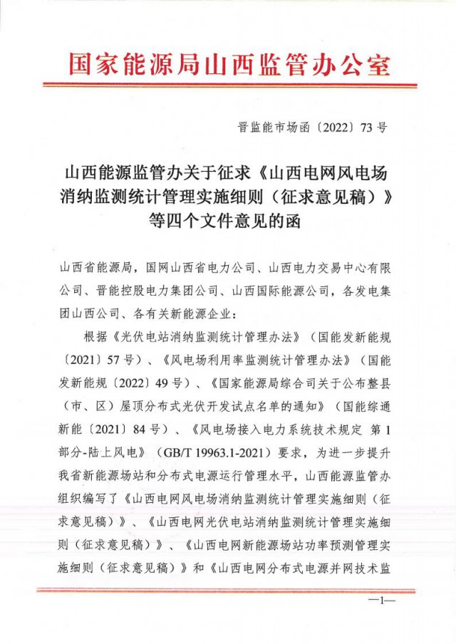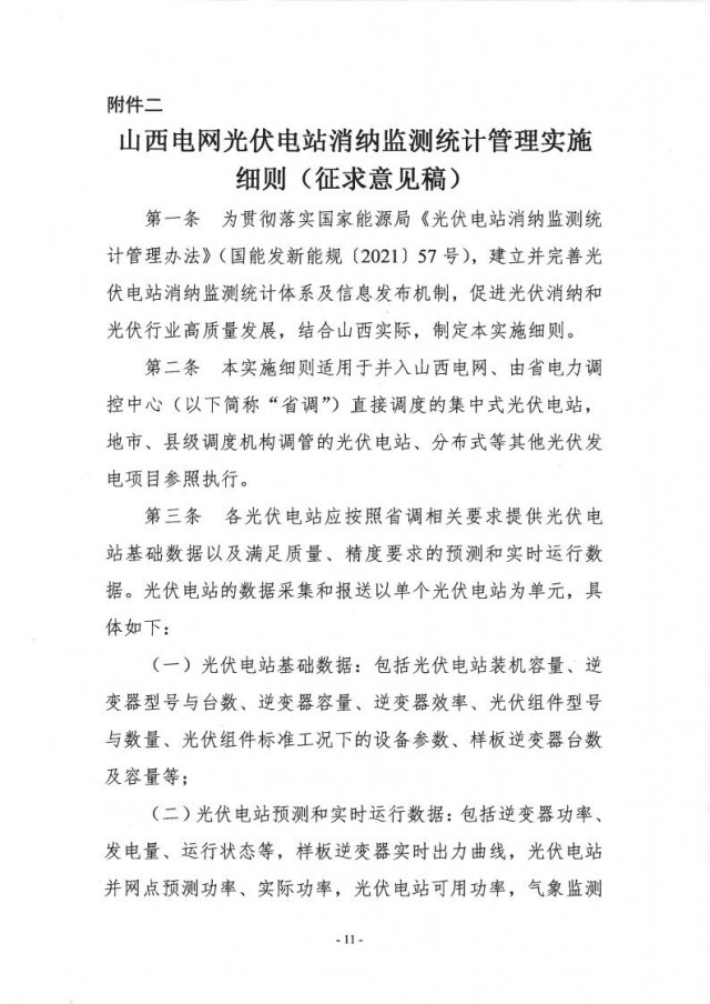 7月26日,山西能源監(jiān)管辦關(guān)于征求《山西電網(wǎng)風(fēng)電消納監(jiān)測(cè)統(tǒng)計(jì)管理實(shí)施細(xì)則(征求意見稿)》等四個(gè)文件意見的函,包含《山西電網(wǎng)光伏電站消納監(jiān)測(cè)統(tǒng)計(jì)管理實(shí)施細(xì)則(征求意見稿)》印發(fā),意見稿指出,本實(shí)施細(xì)則適用于并入山西電網(wǎng)、由省電力調(diào)控中心(以下簡(jiǎn)稱“省調(diào)”)直接調(diào)度的集中式光伏電站,地市、縣級(jí)調(diào)度機(jī)構(gòu)調(diào)管的光伏電站、分布式等其他光伏發(fā)電項(xiàng)目參照?qǐng)?zhí)行。